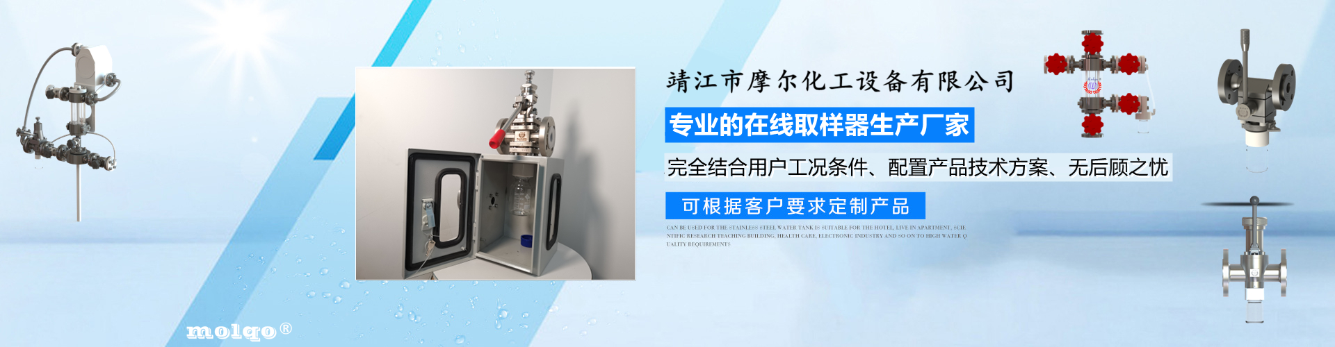 靖江市摩爾化工設備有限公司是一家專業(yè)從事反應釜在線取樣器、管道取樣閥、氟塑及搪玻璃襯里防腐設備、管閥的專業(yè)生產廠家,咨詢熱線:15061018812!